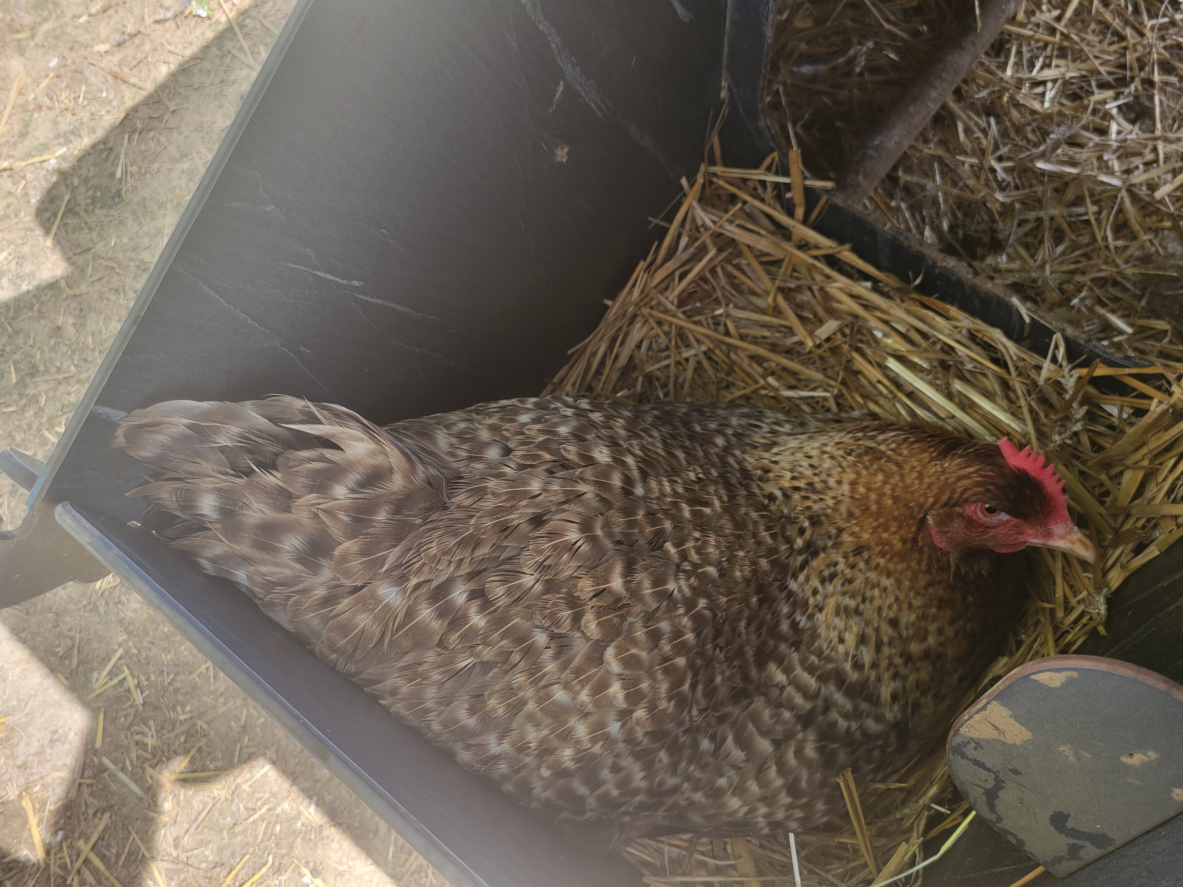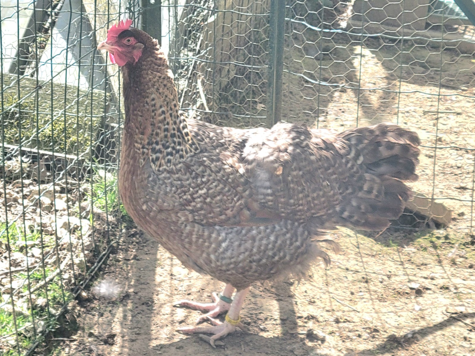 Plusieurs poules de Bielefeld saumon coucou doré rouillé disponibles. Une venant directement d'un élevage Allemand et les deux autres sont issues d'œufs acheté à un autre éleveur allemand. Les poules sortent de reproduction, et sont donc déplumées, ne vivent plus avec un coq.